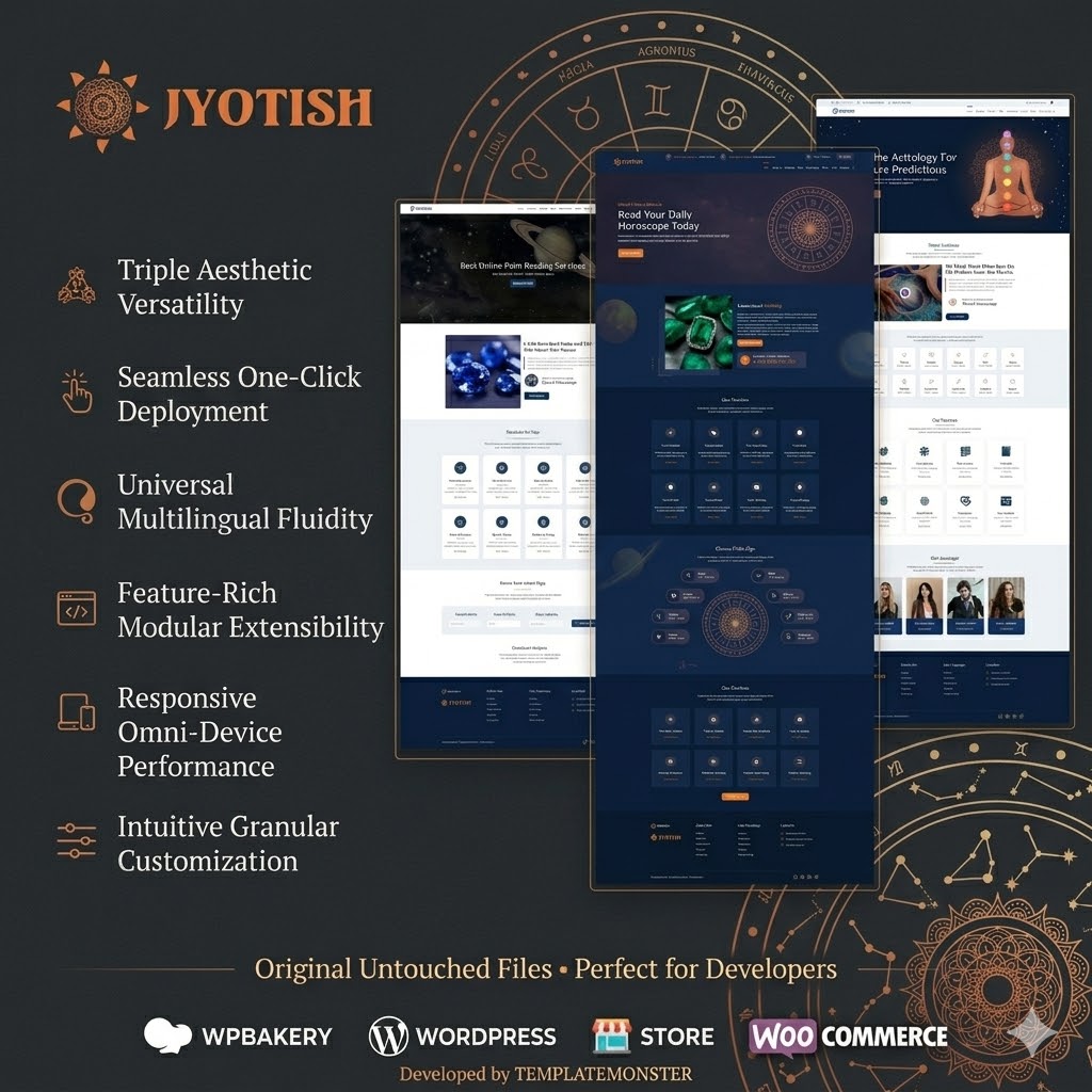 Elevate your spiritual business with Jyotish, a premium, high-impact WordPress theme meticulously crafted for modern astrologers, tarot readers, and spiritual consultants. Whether you specialize in numerology, gemstone consulting, or Vastu Shastra, Jyotish provides the aesthetic brilliance and functional depth your brand deserves.